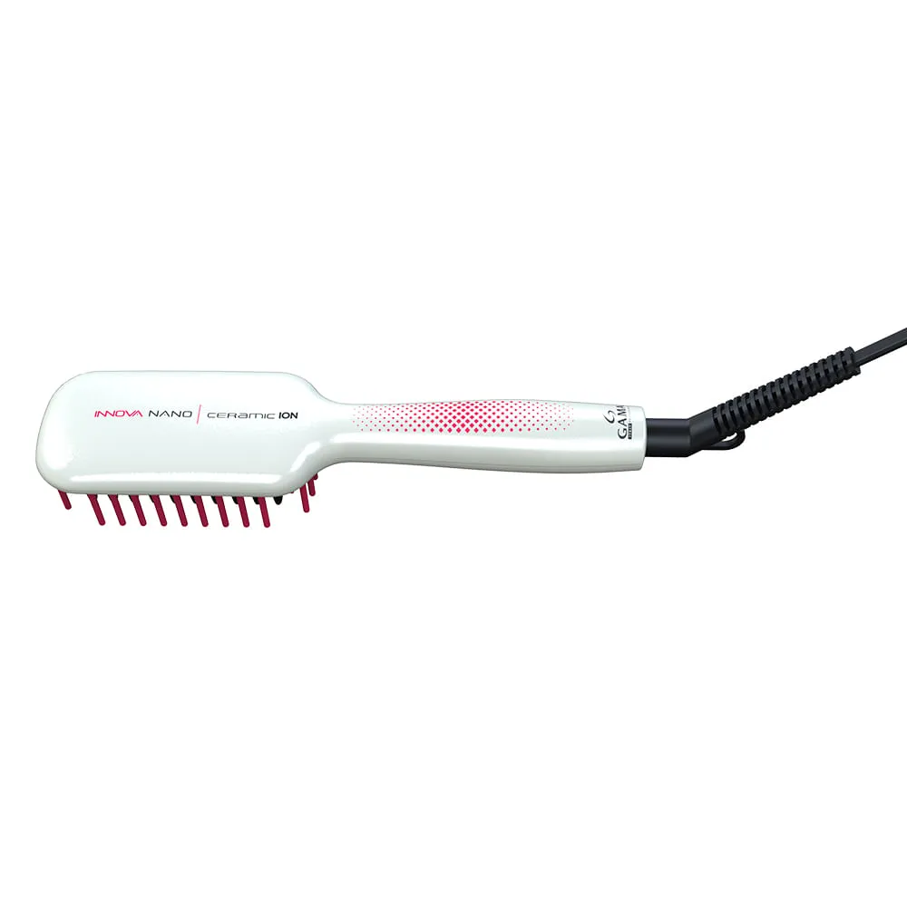 Este cepillo alisador está dotado de cerdas térmicas que, cuando están calientes, alisan tu pelo mientras lo cepillan y lo desenredan, garantizándote ahorro de tiempo y resultados óptimos con extrema facilidad. Su tamaño reducido lo convierte en el cepillo perfecto para que te lleves a todos lados. Además, está dotado de un voltaje universal de 110-220V, así que podrás usarlo sin problemas en cualquier país del mundo.