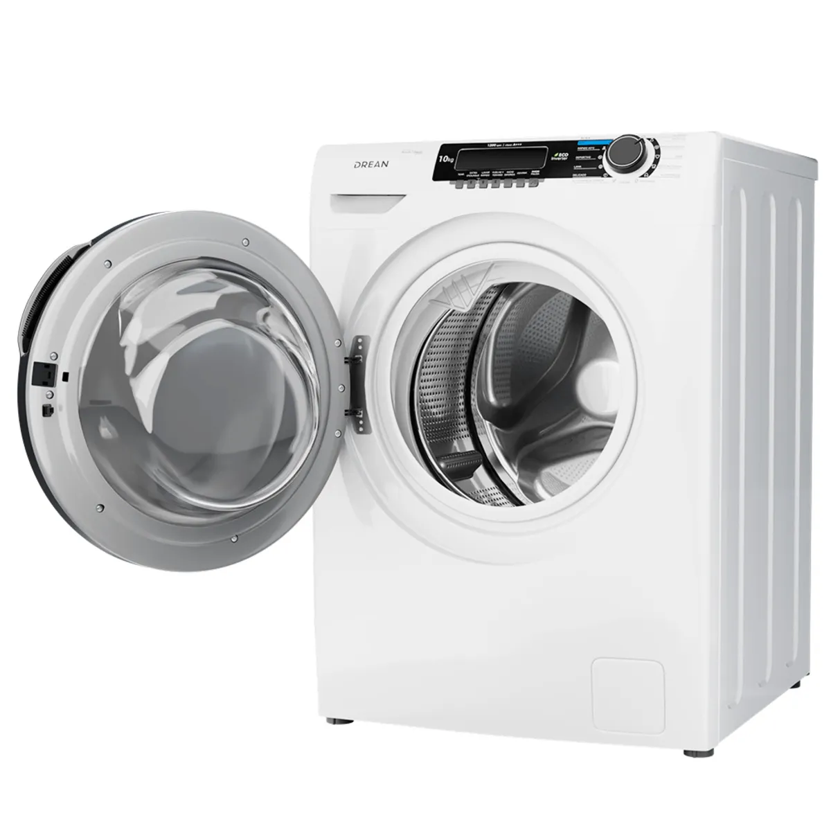 Lavarropas Drean LFDR1012SB de carga frontal con tecnología Eco Inverter, diseñado para brindar máximo rendimiento y eficiencia en cada lavado. Su capacidad de 10 kg y centrifugado de hasta 1200 RPM permiten lavar grandes volúmenes con resultados óptimos. Cuenta con 15 programas, tambor con luz y funciones inteligentes que optimizan el consumo de agua y energía. Fabricado en Argentina, combina innovación, ahorro y cuidado de las prendas.
