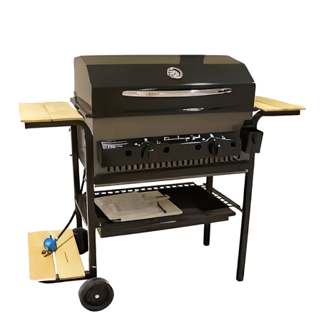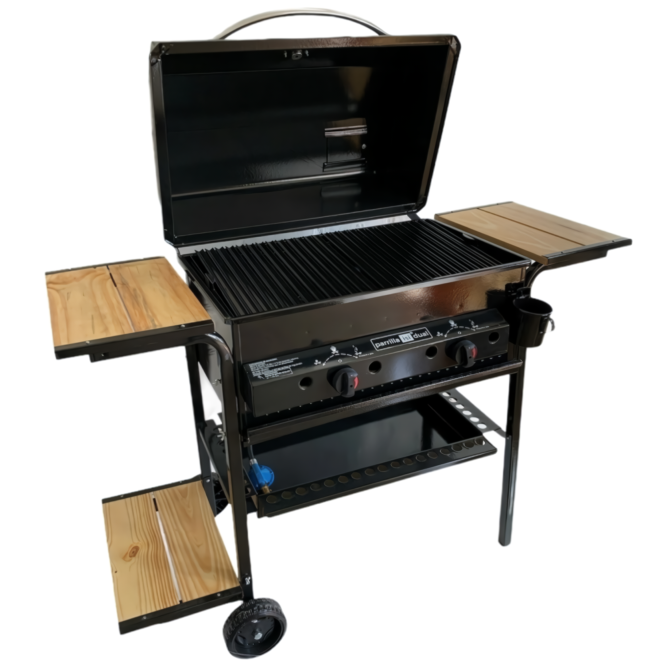 Parrilla ISI Dual a gas, diseñada para ofrecer una experiencia completa de cocina con funciones de parrilla, horno y horno pizzero en un solo equipo. Su construcción enlozada y su sistema de quemadores independientes permiten una cocción pareja y eficiente, ideal para preparar carnes, pizzas a la piedra y distintas comidas con resultados profesionales.