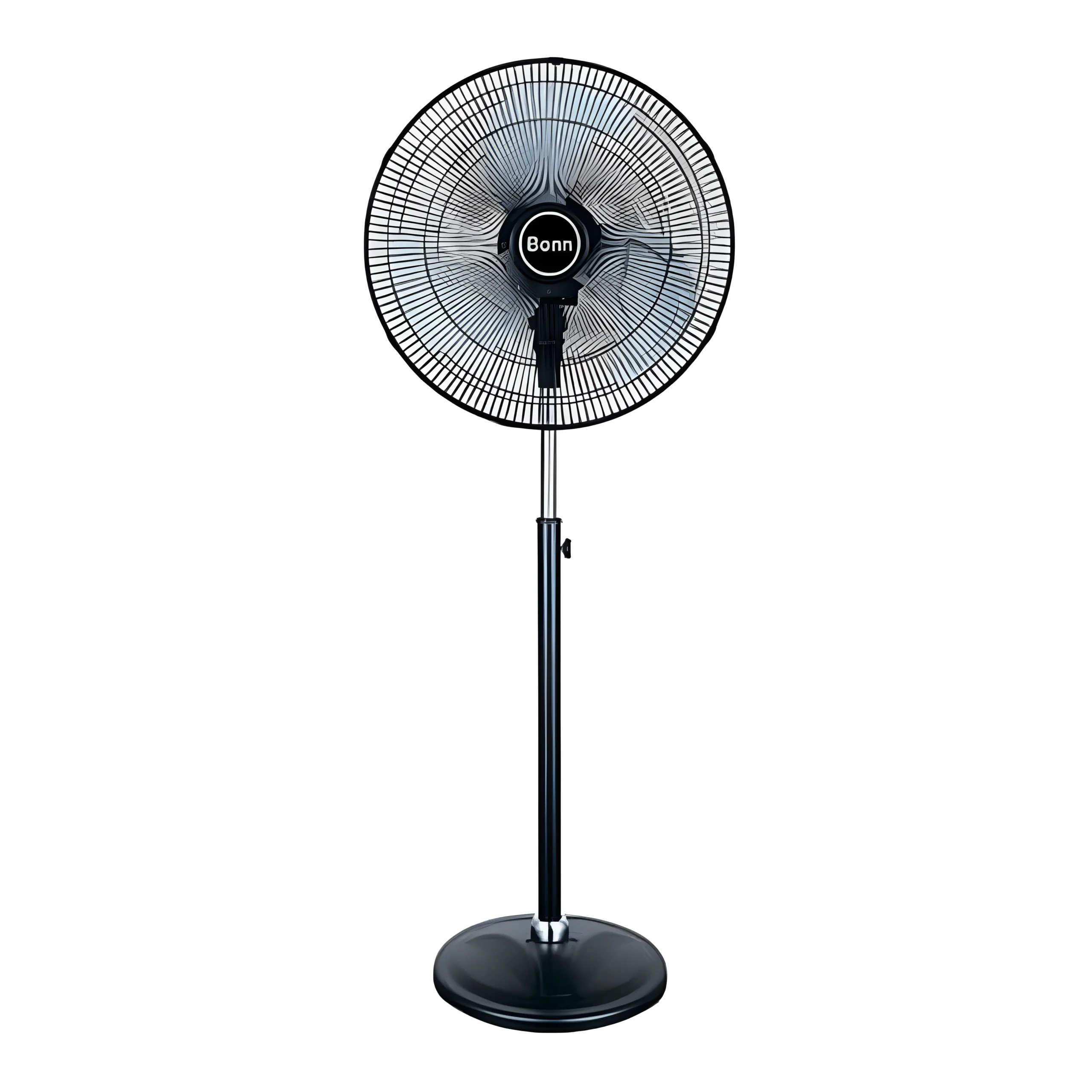 Ventilador de pie BONN 20” con estructura metálica resistente y gran potencia de ventilación, ideal para mantener ambientes frescos con regulación de altura y movimiento oscilante.